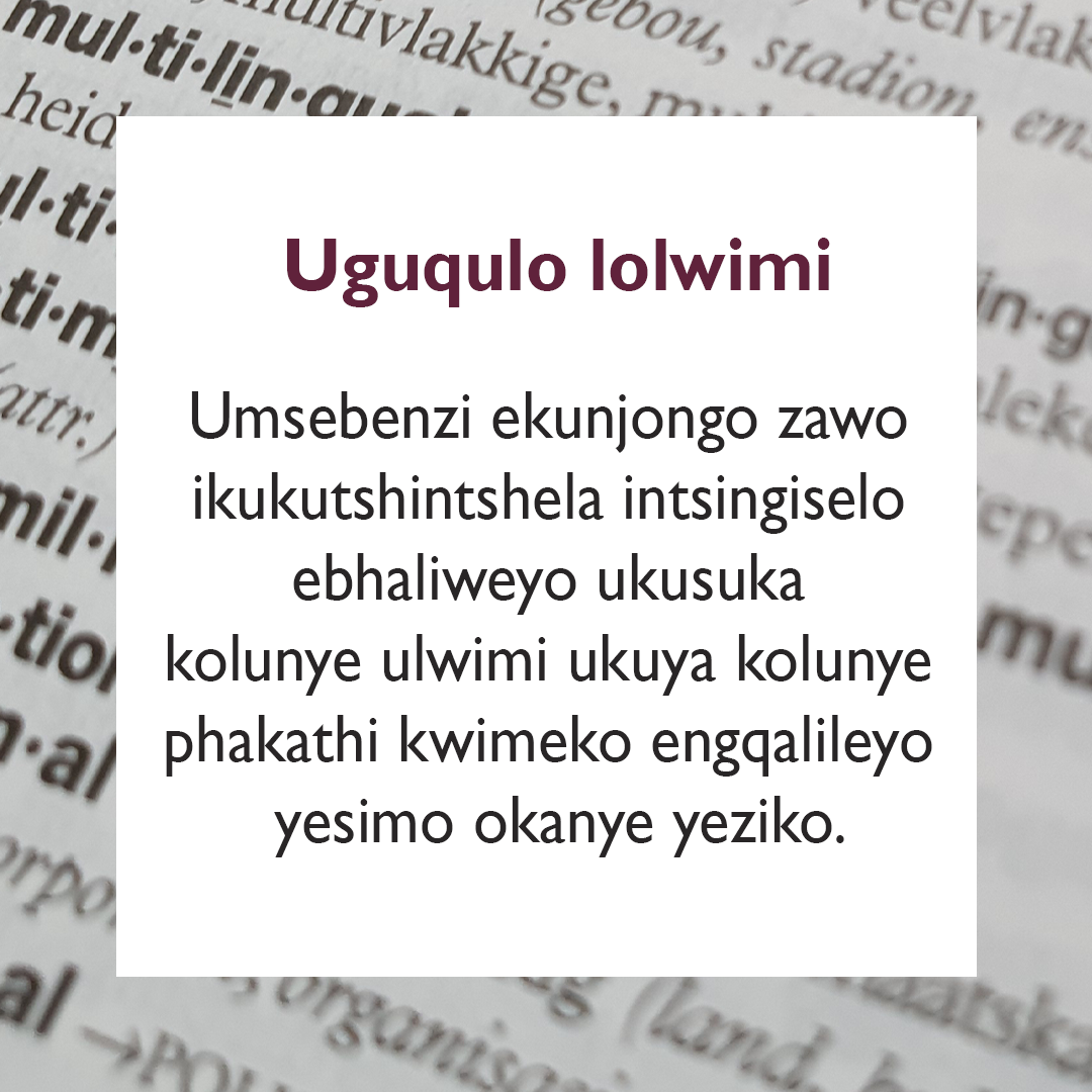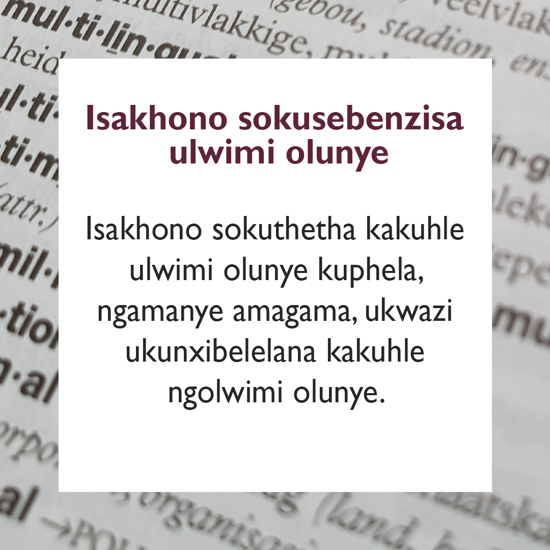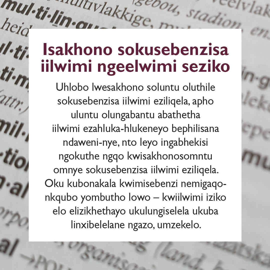 Sibhekisa kukwahluka-hlukana kwethu njengelizwe – kwaye siyasivumela ukuba siqhagamshelane ngeendlela ebesingenako ukuqhagamshelana ngazo ngaphandle kwesi sakhono. Isakhono sokusebenzisa iilwimi ngeelwimi ke ngoko sikwa sisimo sengqondo.